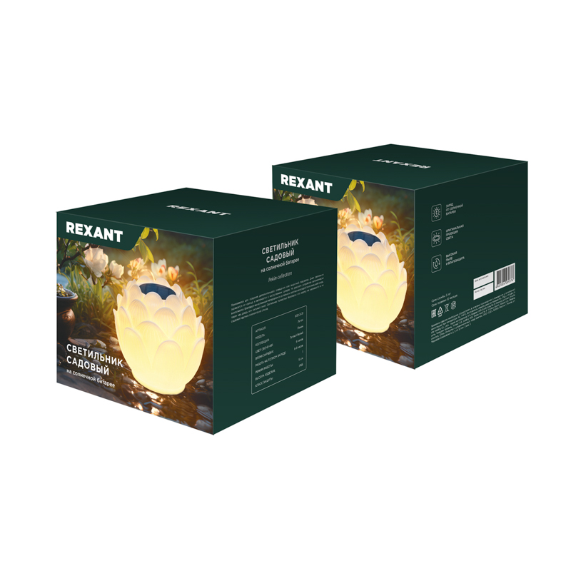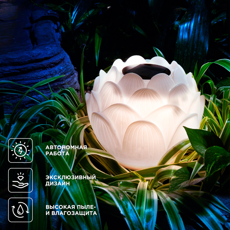 Светильник садовый Лотос, 3000К, 15см, встроенный аккумулятор, солнечная панель, коллекция Пекин, код 602-2431, производитель REXANT