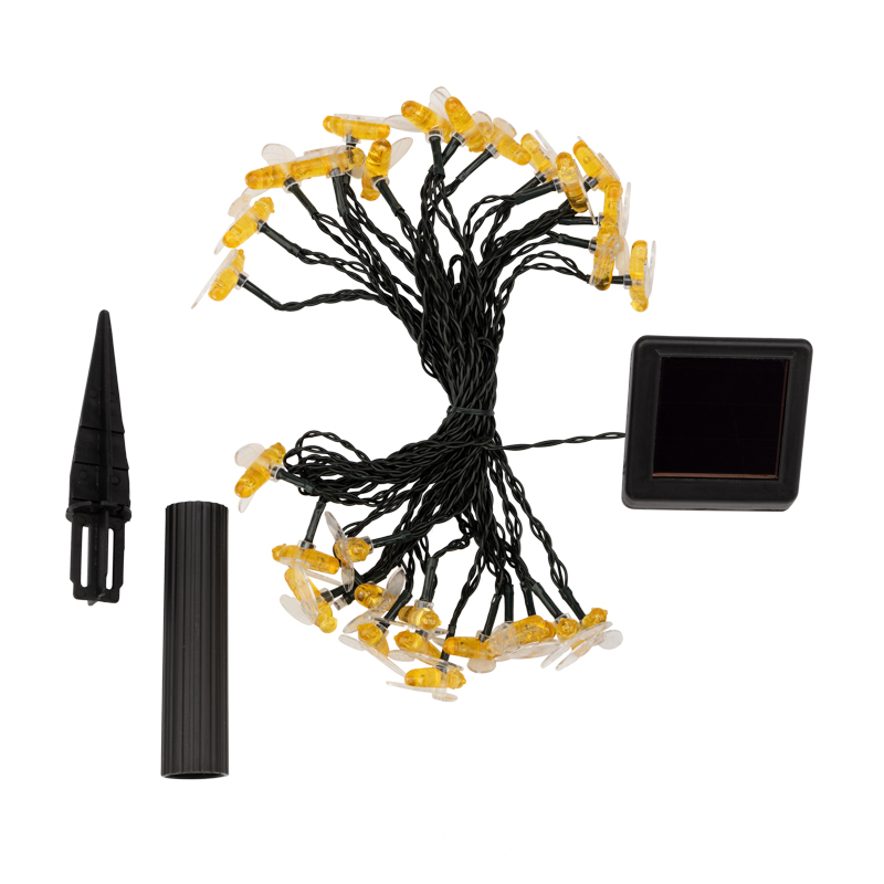 Каскад Lamper Янтарные Пчелы LED 10 м с выносной солнечной панелью 2 м и аккумулятором, IP65, теплое белое свечение 602-252 REXANT