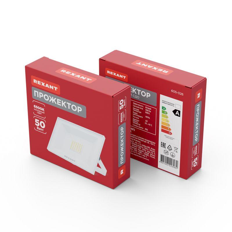 Прожектор светодиодный СДО 50 Вт 4000 Лм 6500K белый, код 605-026, производитель REXANT