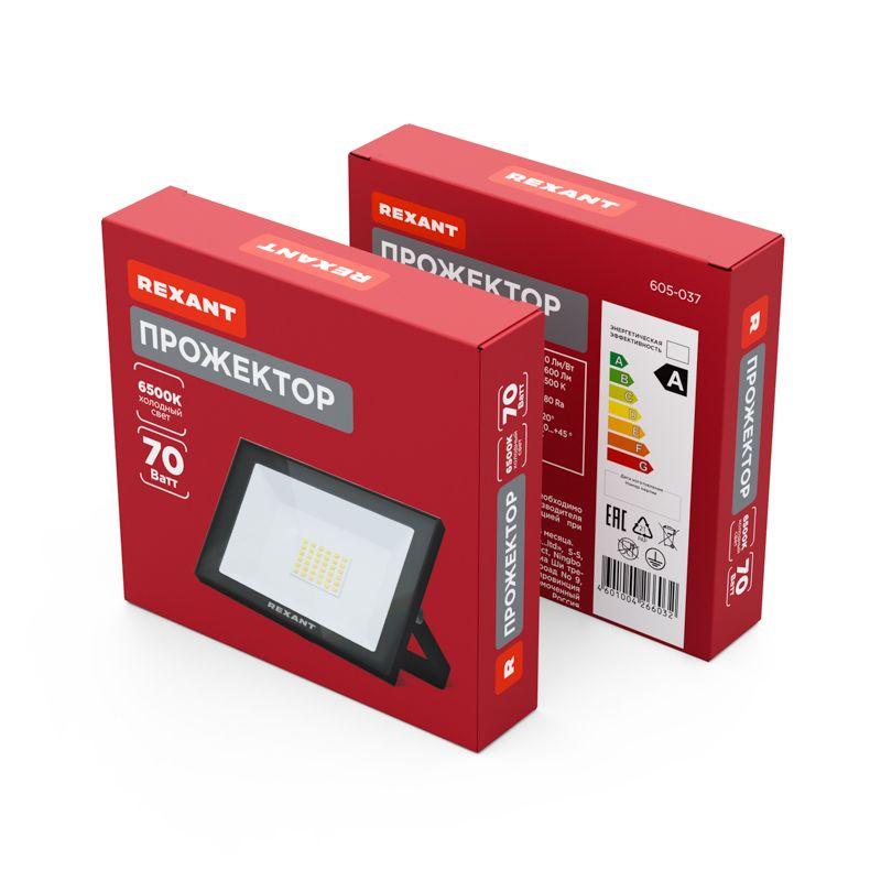 Прожектор светодиодный СДО 70 Вт 5600 Лм 6500К черный, код 605-037, производитель REXANT