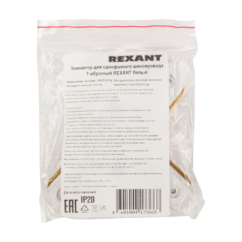 Коннектор для шинопровода T-образный белый, код 612-006, производитель REXANT