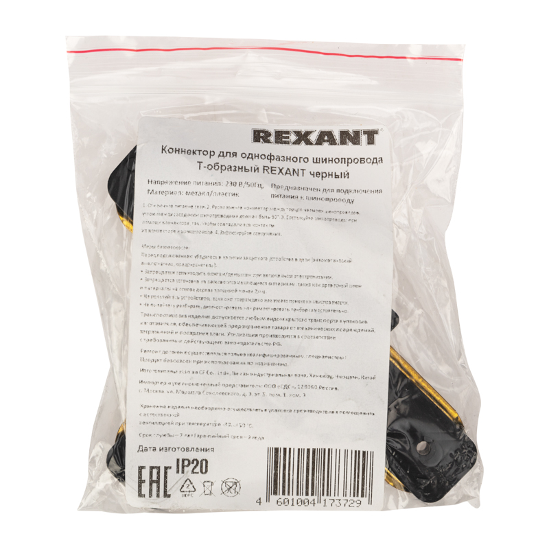 Коннектор для шинопровода T-образный черный, код 612-012, производитель REXANT