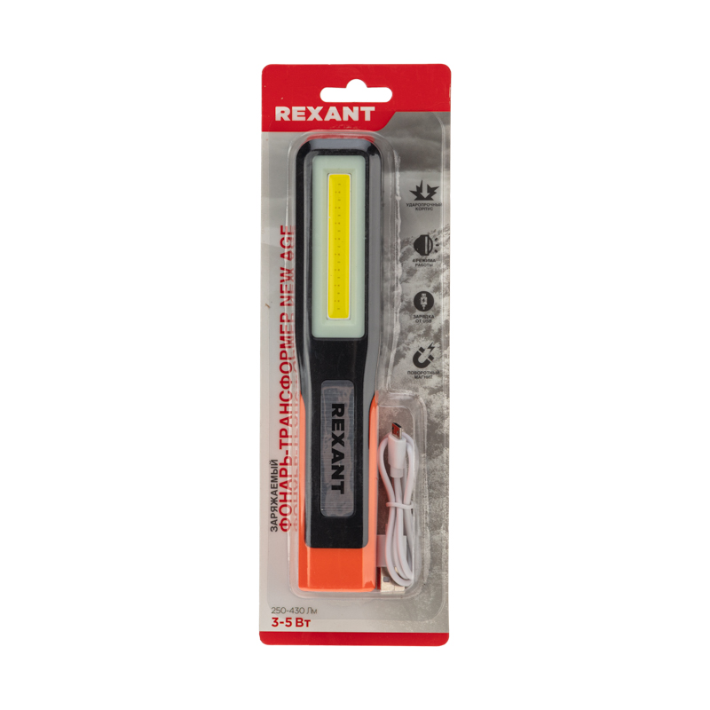 Фонарь автомобильный NEW AGE 3 режима с аварийным красным сигналом крюком и поворотным держателем на магните СОВ, код 75-1704, производитель REXANT