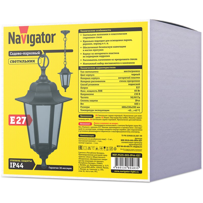 Светильник NOF-PG35-001-IP44-E27 (6 граней, черный), код 80483, производитель Navigator
