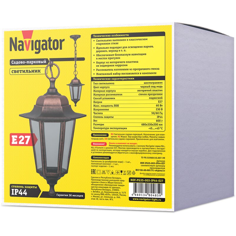Светильник NOF-PG35-003-IP44-E27 (6 граней, черный под медь), код 80485, производитель Navigator