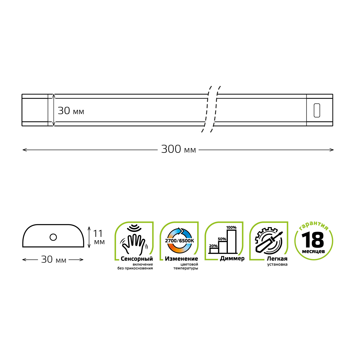 Светильник модульный сенсорный 6вт 400 Лм 2700- 6500К 300х30х11 мм IP20 модель B работает от движения рукой Modul, код 9019531206-T, производитель GAUSS