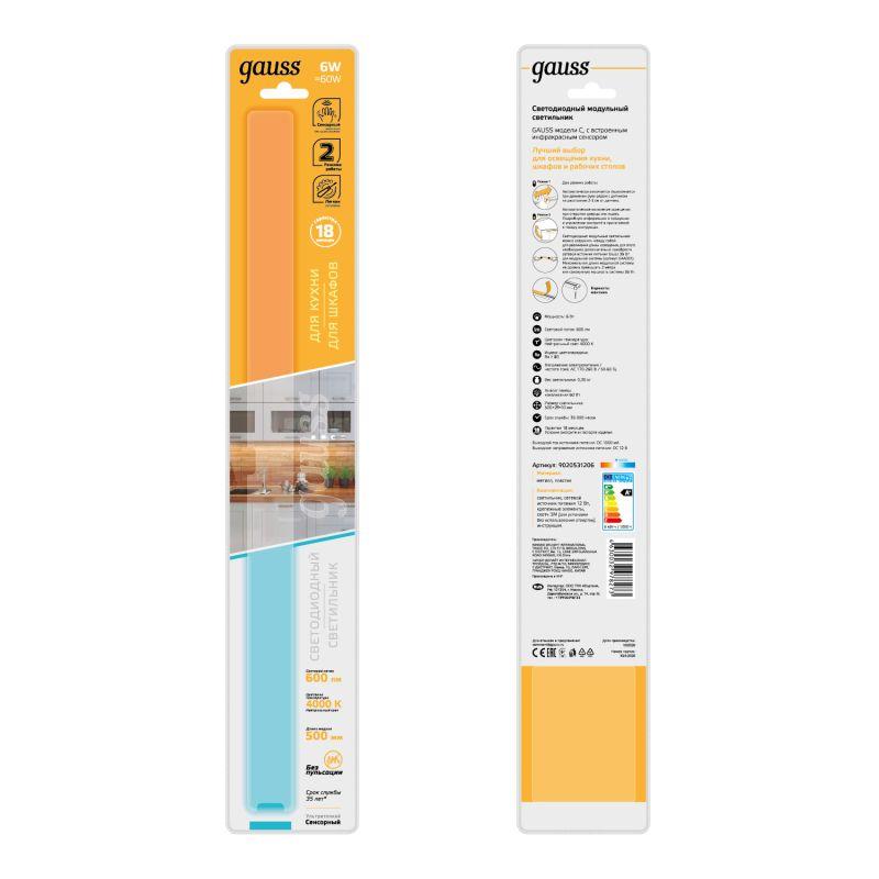 Светильник модульный сенсорный 6 Вт 600 Лм 4000К 500х29х10 мм IP20 модель C работает от движения рукой Modul 9020531206 GAUSS