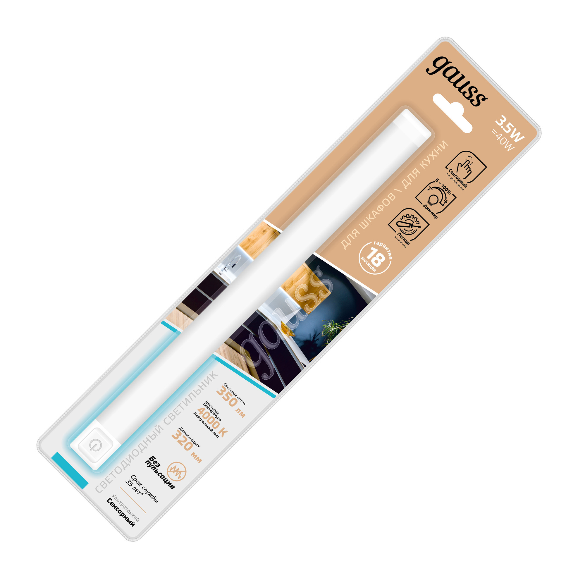 Светильник модульный сенсорный 3,5вт 350 Лм 4000К 320х25х13 мм IP20 модельК работает от прикосновения с димером Modul, код 9021531235-D, производитель GAUSS