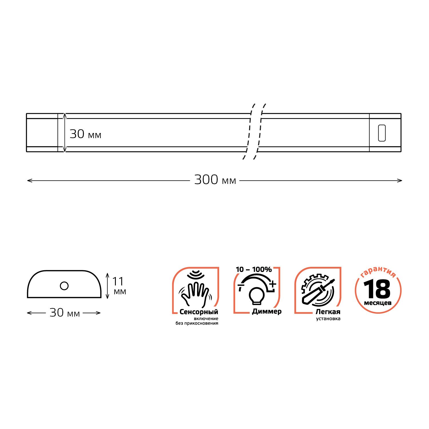 | Преимущества: | Сенсорное включение|Мощный и яркий свет|Простая установка|Возможность соединять светильники в линию|Дампирование света|Крепежные элементы в комплекте|Гарантия 18 месяцев: |