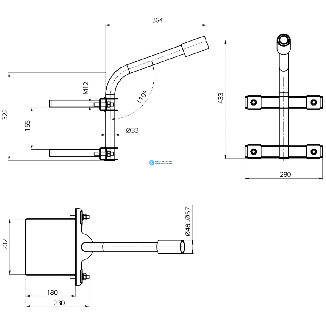Кронштейн для уличных светильников на опору с 2-мя хомутами 625х460х680 D48 мм, код 903265302, производитель GAUSS