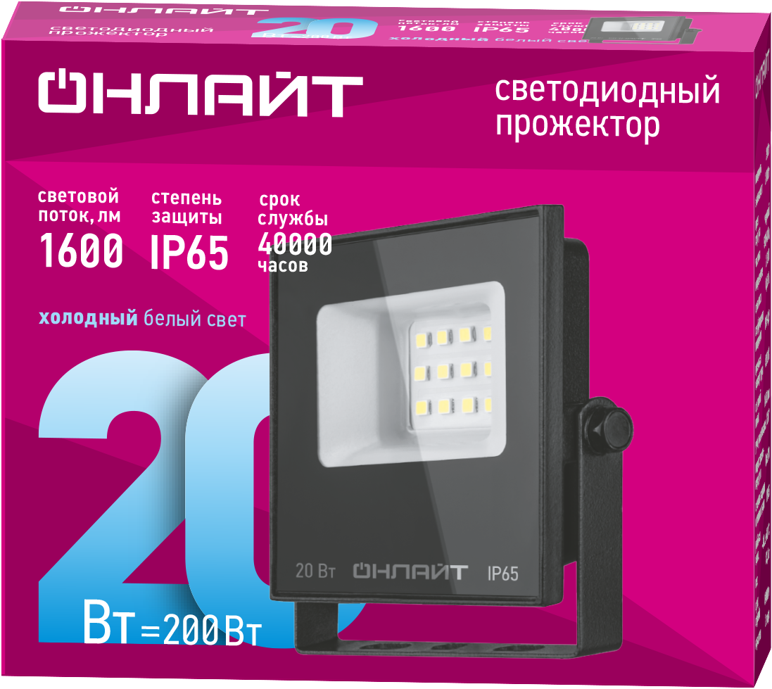 Прожектор светодиодный 20вт 6500К 1600Лм IP65 OFL-03 BL LED, код 90844, производитель ОНЛАЙТ