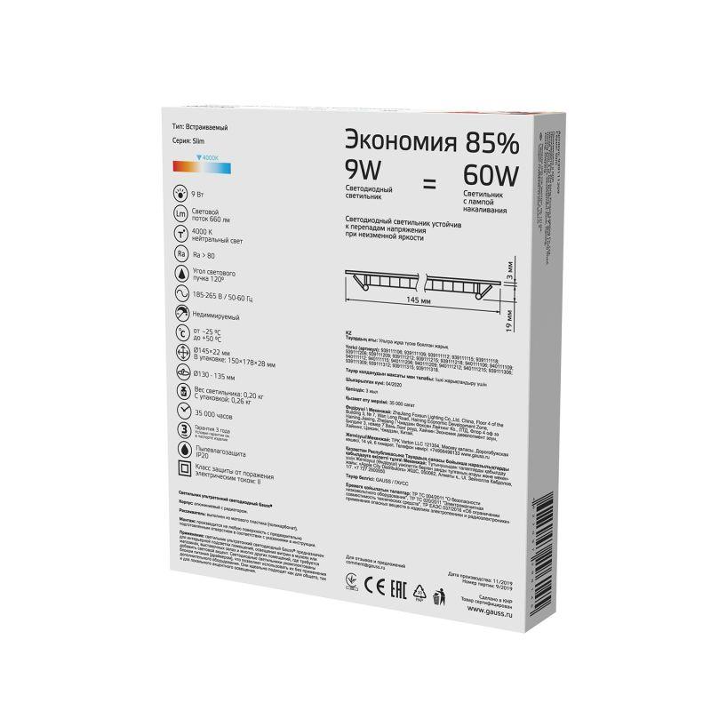 Класс энергоэффективности: | A++, A+, A (LED): |