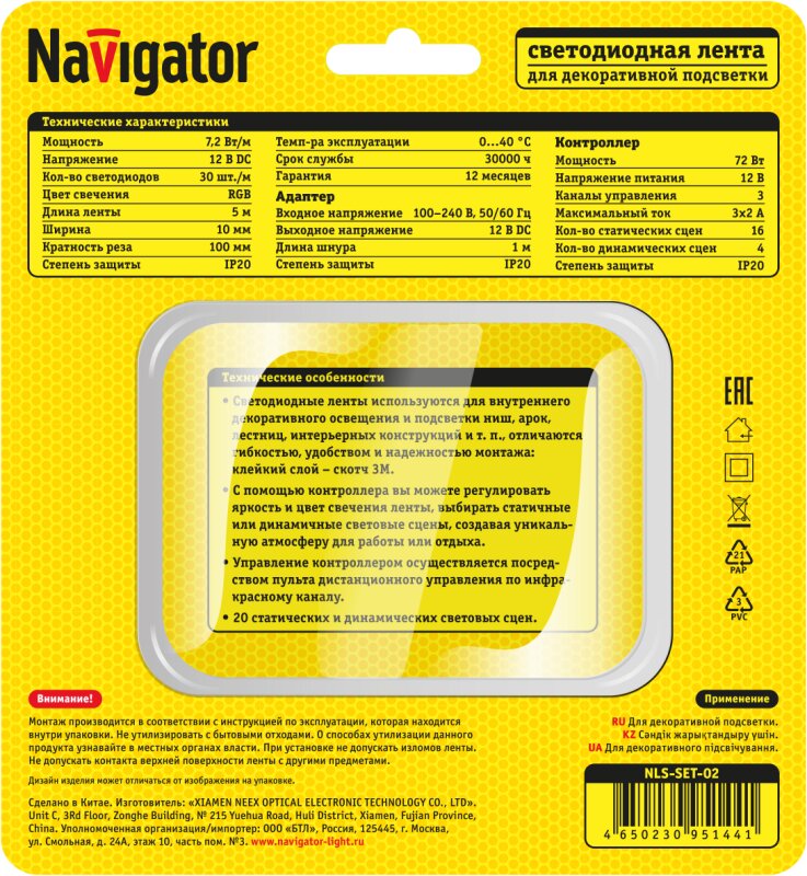 Лента светодиодная NLS-SET-02 5м, код 95144, производитель Navigator