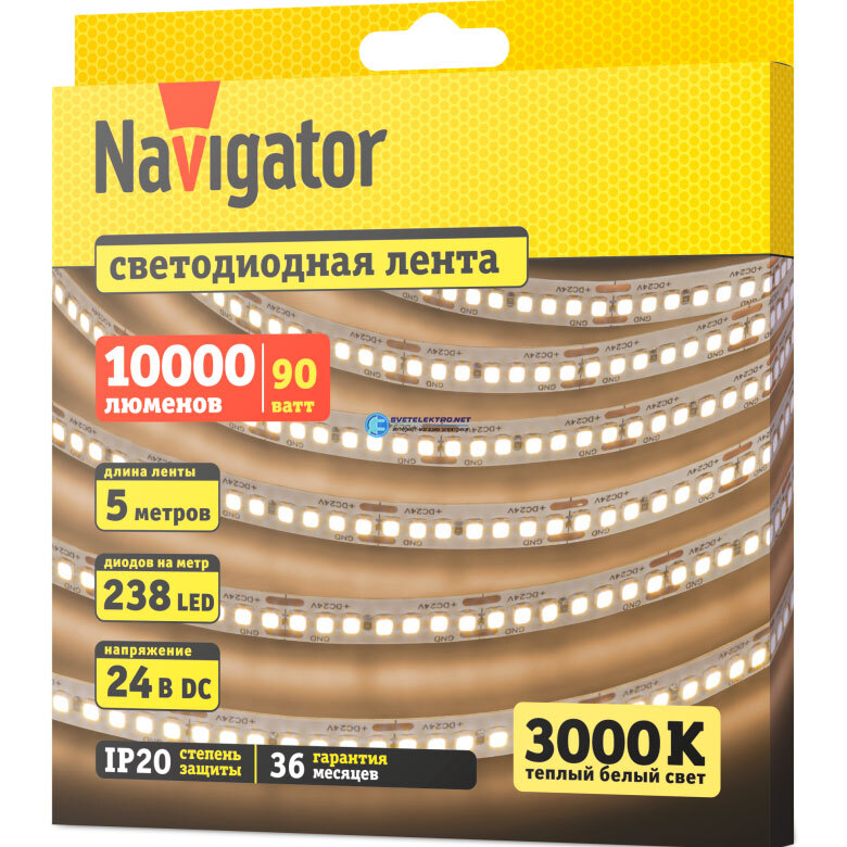Лента светодиодная NLS-2835WW240-18-IP20-24V 5м, код 95310, производитель Navigator