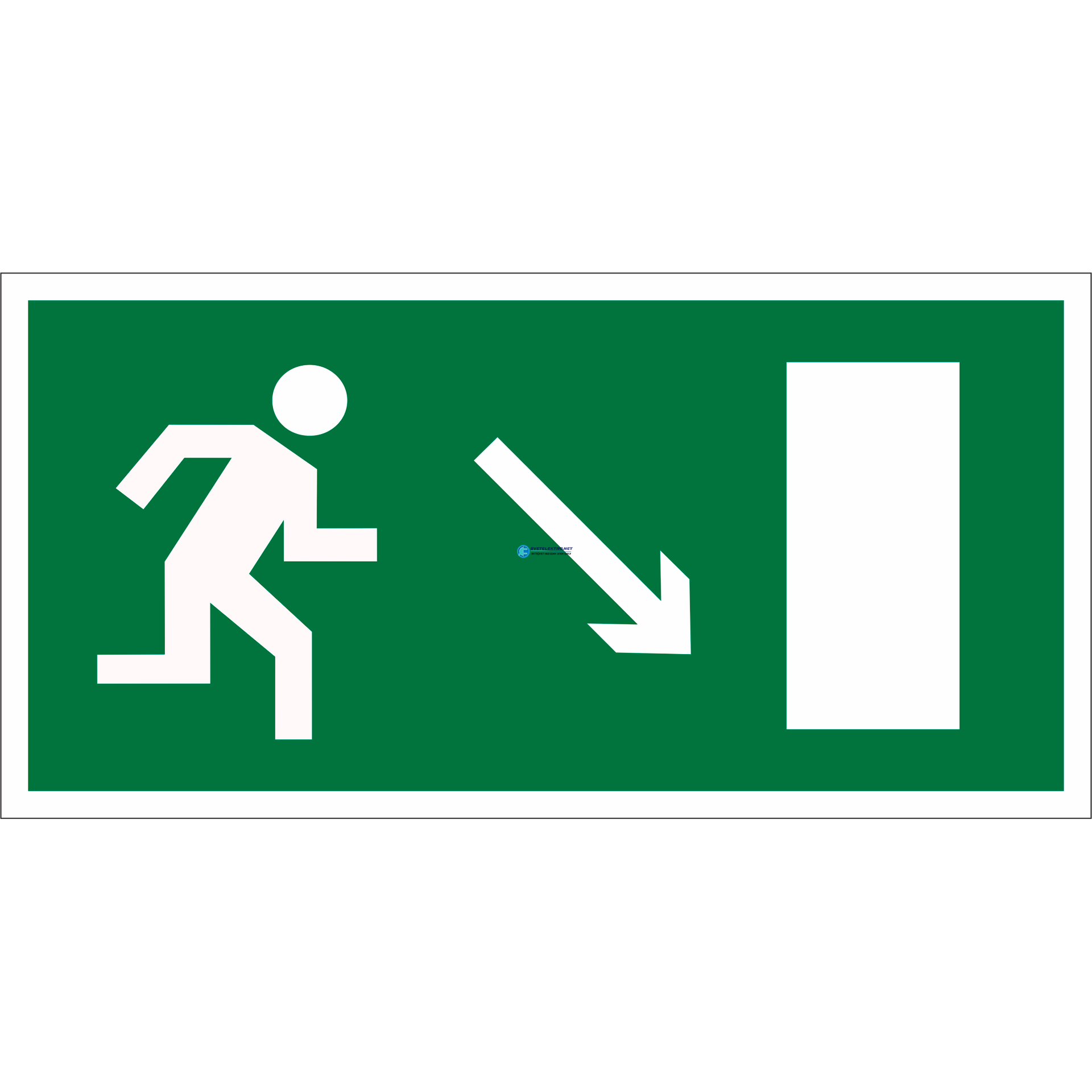 Знак безопасности BL-2010B.E07''Напр. к эвакуационному выходу направо вниз'' a15031 Белый свет