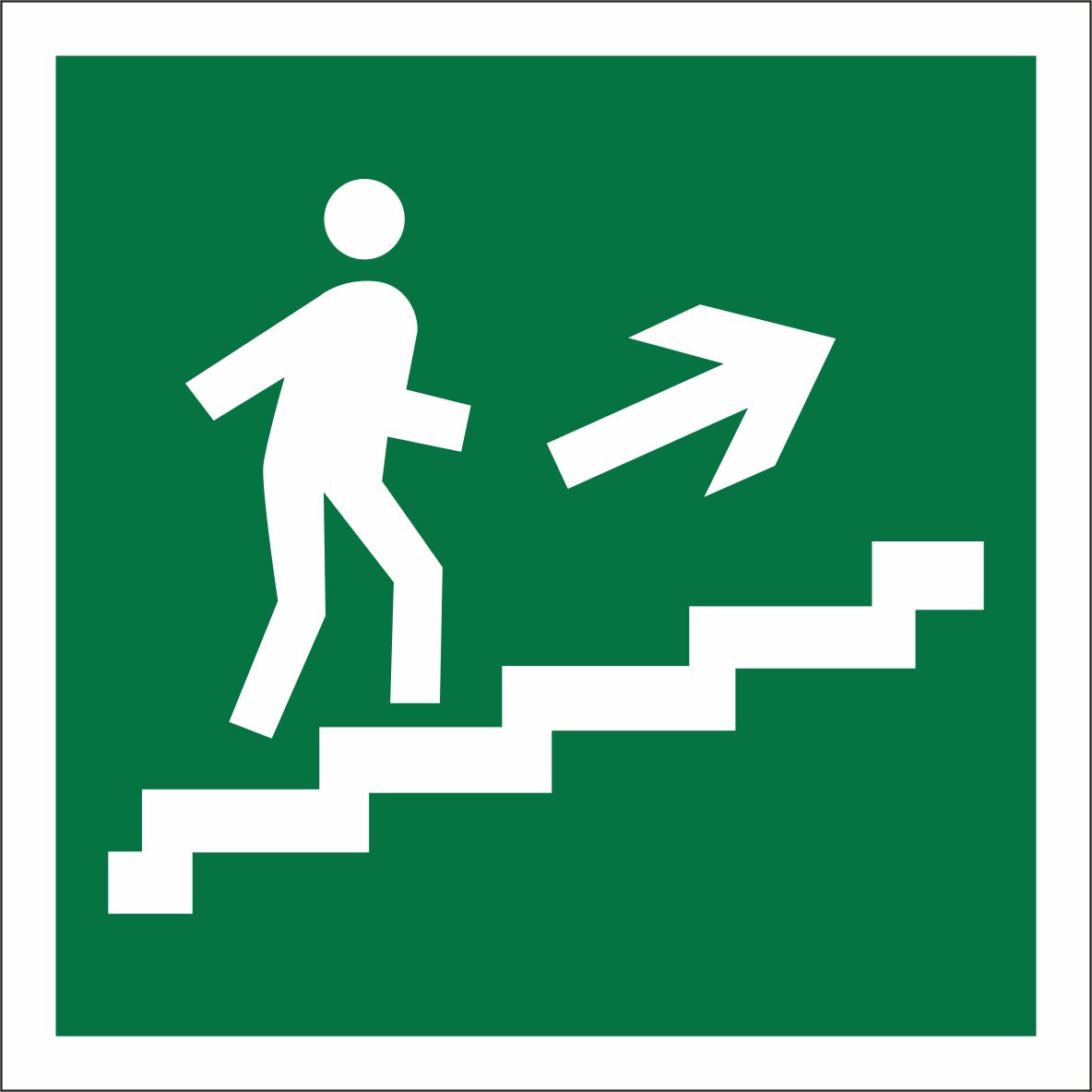 Знак безопасности BL-1515.E15''Напр. к эвакуац. выходу по лестн. вверх (прав.)'' a16796 Белый свет