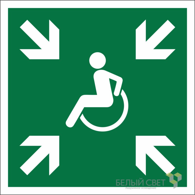 Знак безопасности NPU-1818.E65''Пункт (место) сбора МГН (безопасная зона МГН)'' a18385 Белый свет