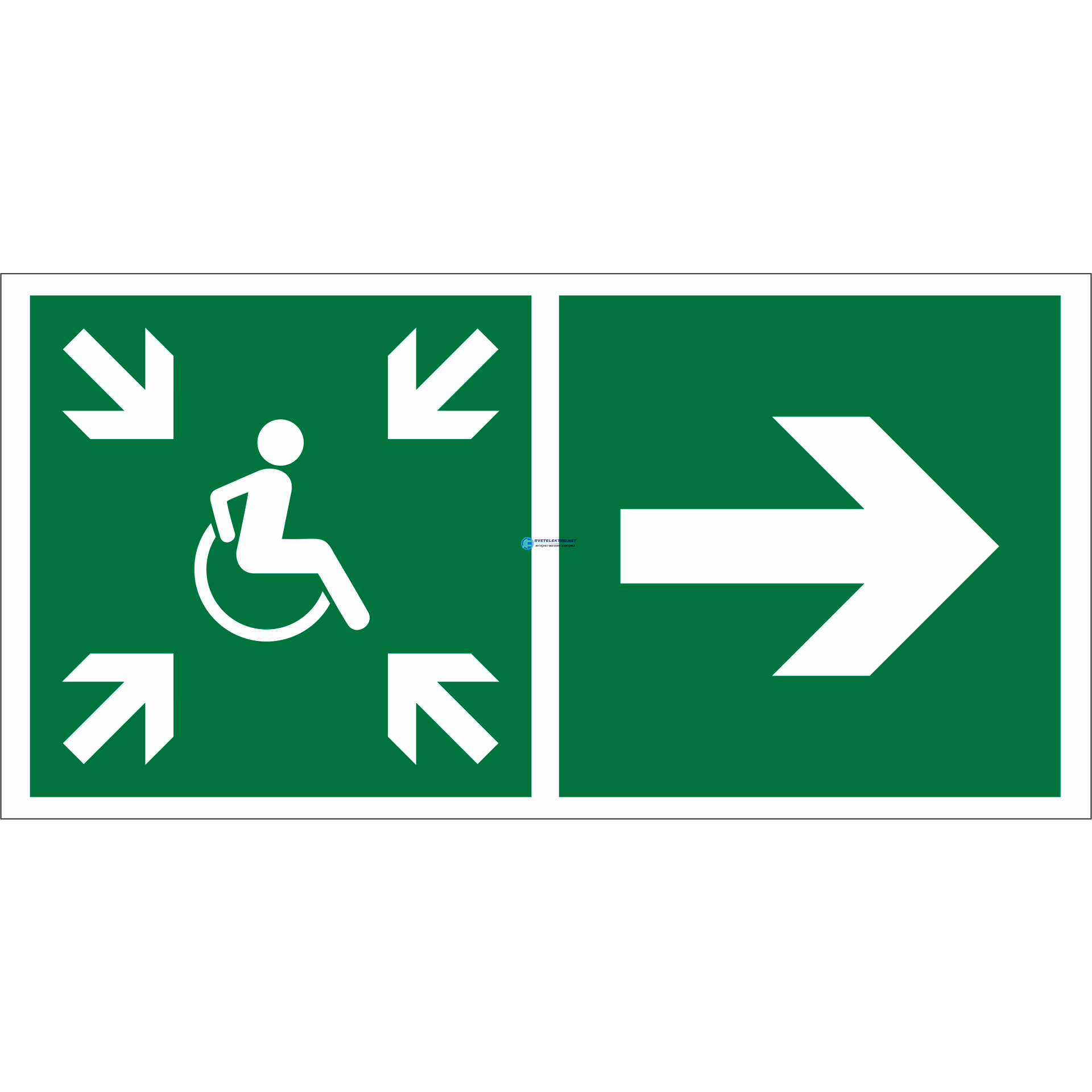 Знак безопасности BL-3015A.E76''Напр.движ. к пункту сбора(безоп.зоне)МГН направо'', код a18563, производитель Белый свет