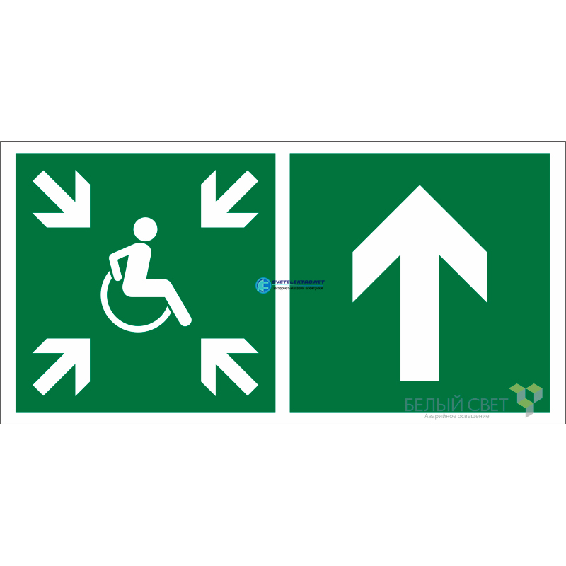 Знак безопасности BL-3015B.E77''Напр.движ. к пункту сбора(безоп.зоне)МГН прямо'' a19336 Белый свет