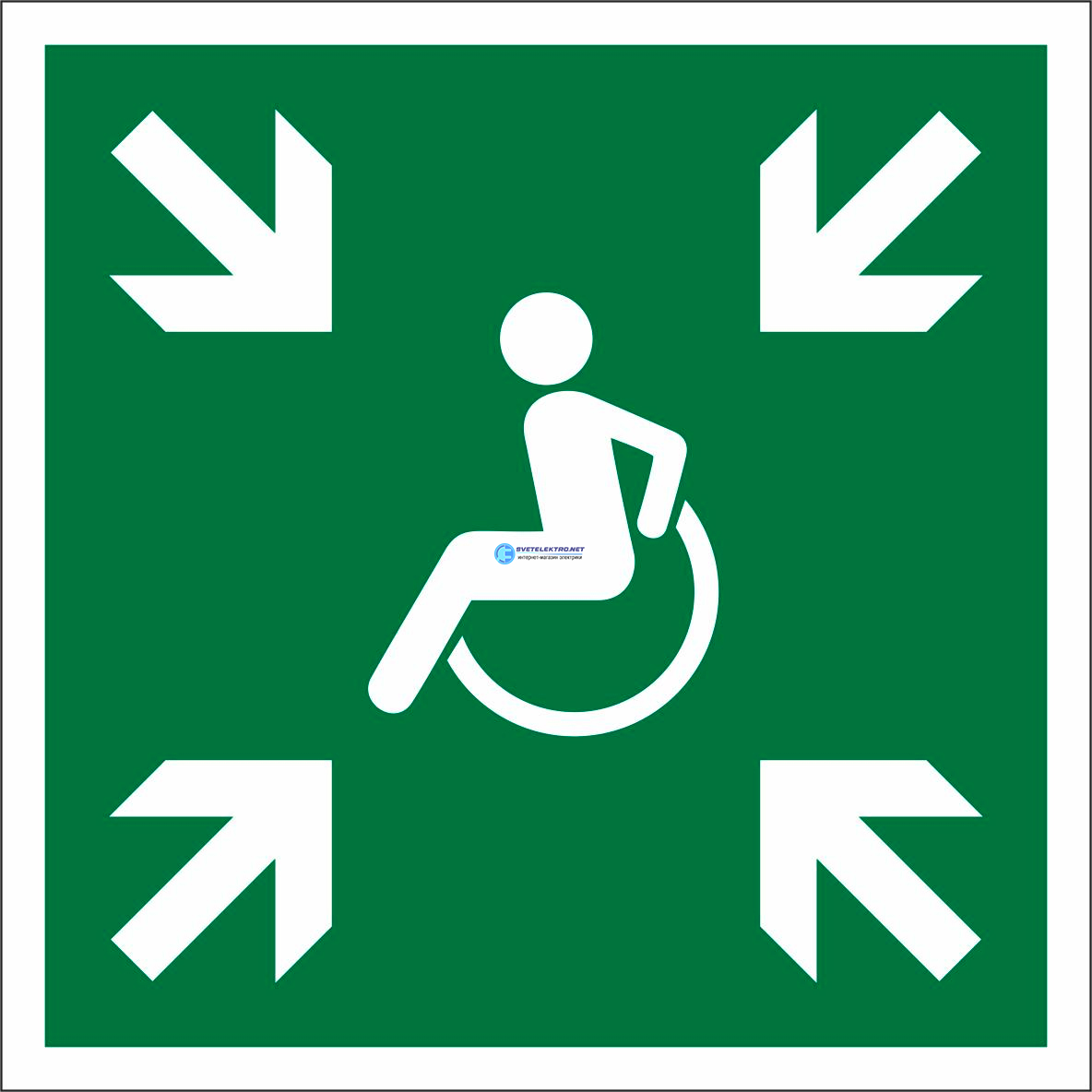 Знак безопасности BL-2010B.E65''Пункт (место) сбора МГН (безопасная зона МГН)'' a19720 Белый свет