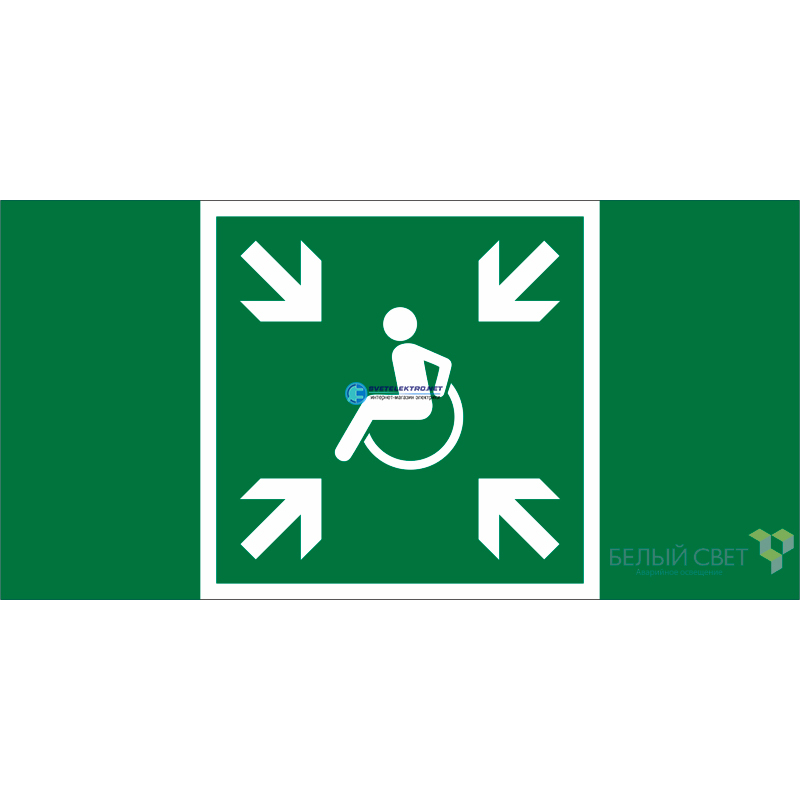 Знак безопасности BL-3517.E65''Пункт (место) сбора МГН (безопасная зона МГН)'' a20070 Белый свет