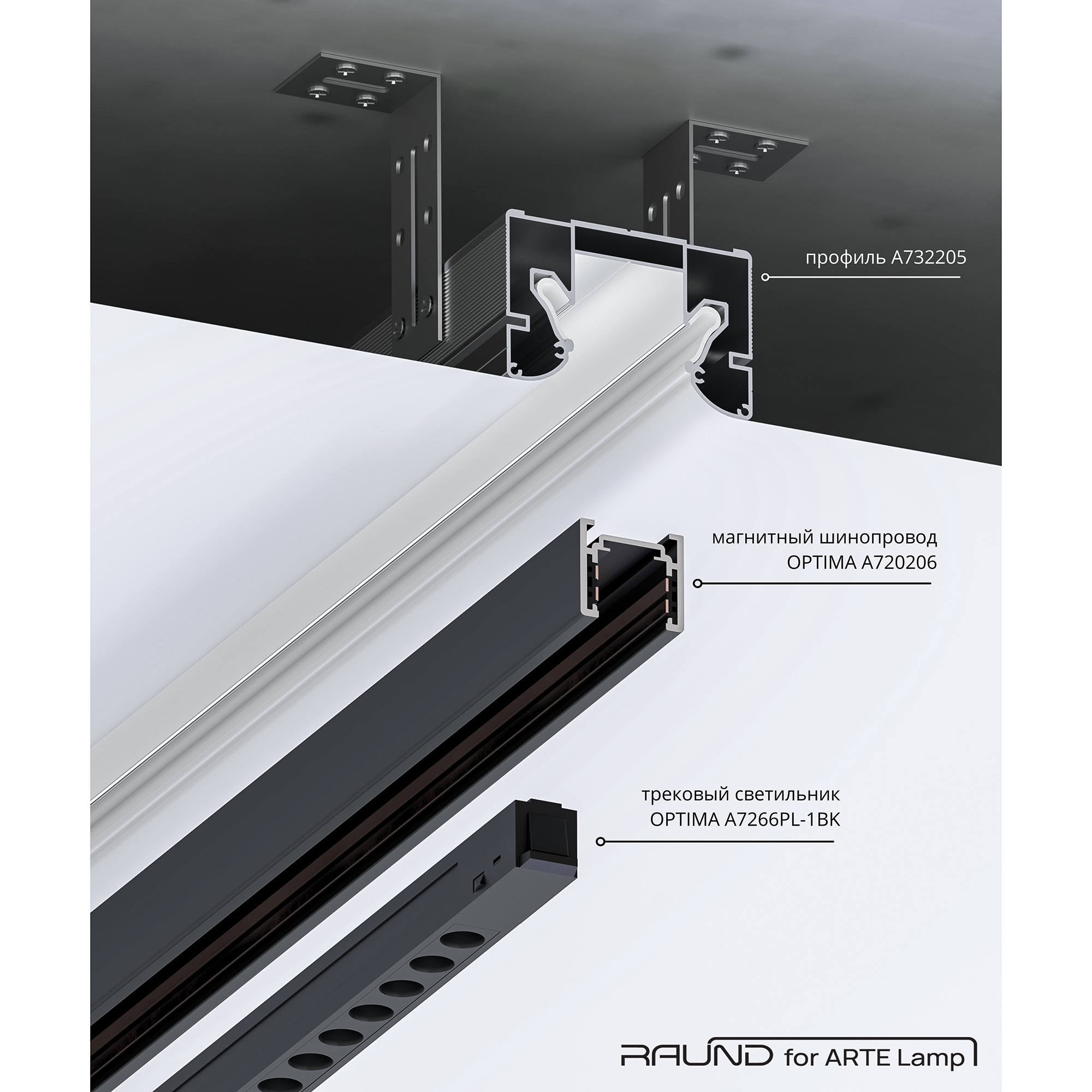 Профиль для шинопровода в натяжной потолок RAUND FOR Алюминий Серый, код A732205, производитель Arte Lamp