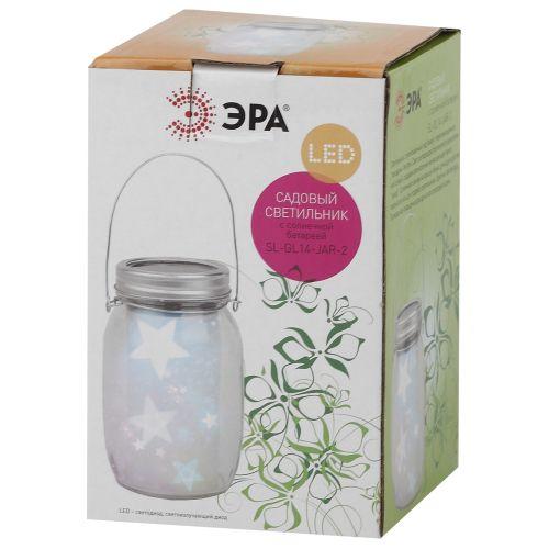Садовый светильник на солнечной батарее, стекло, металл, прозрачный, 13,5 см SL-GL14-JAR-2, код Б0032579, производитель ЭРА