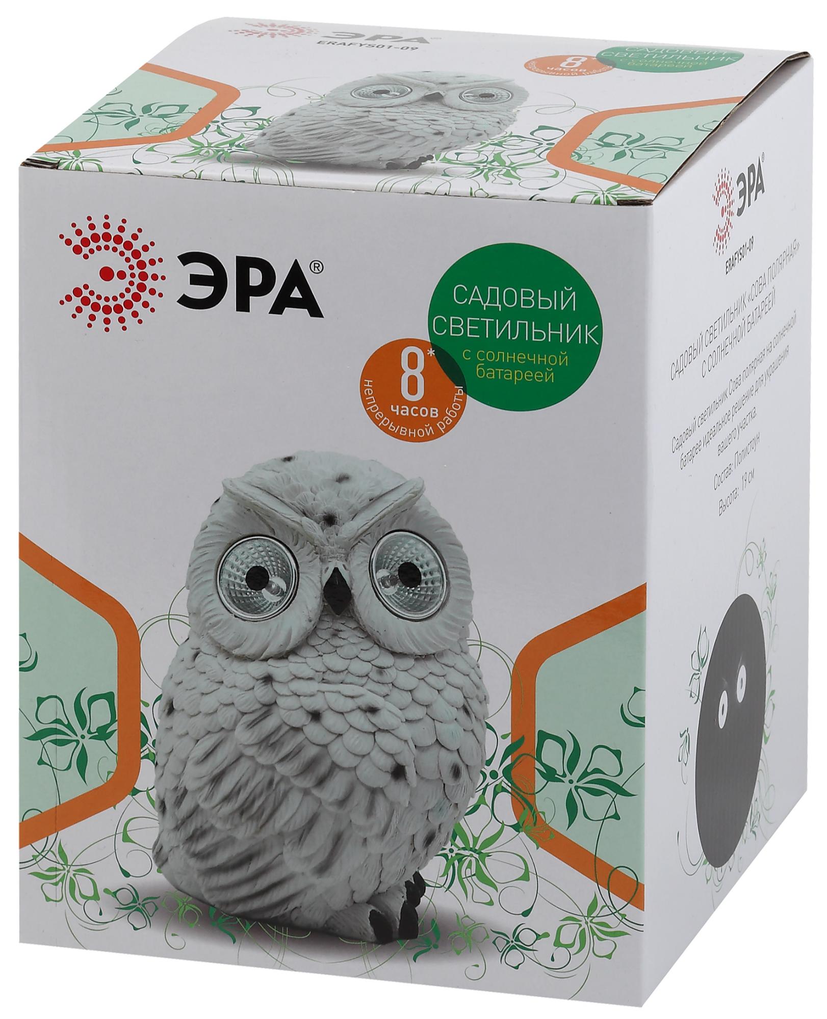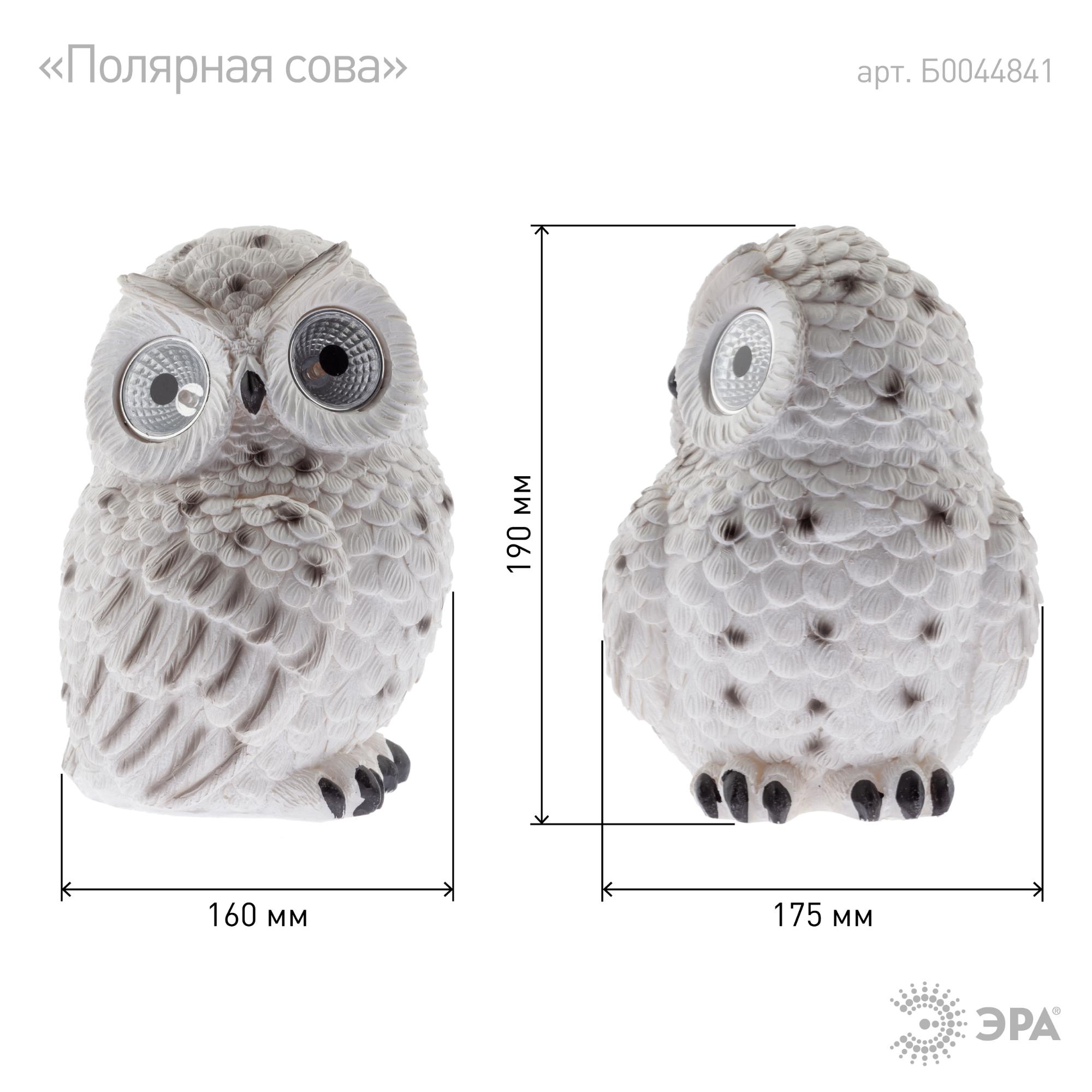 Садовый светильник Полярная сова на солнечной батарее, полистоун, 19 см, код Б0044841, производитель ЭРА