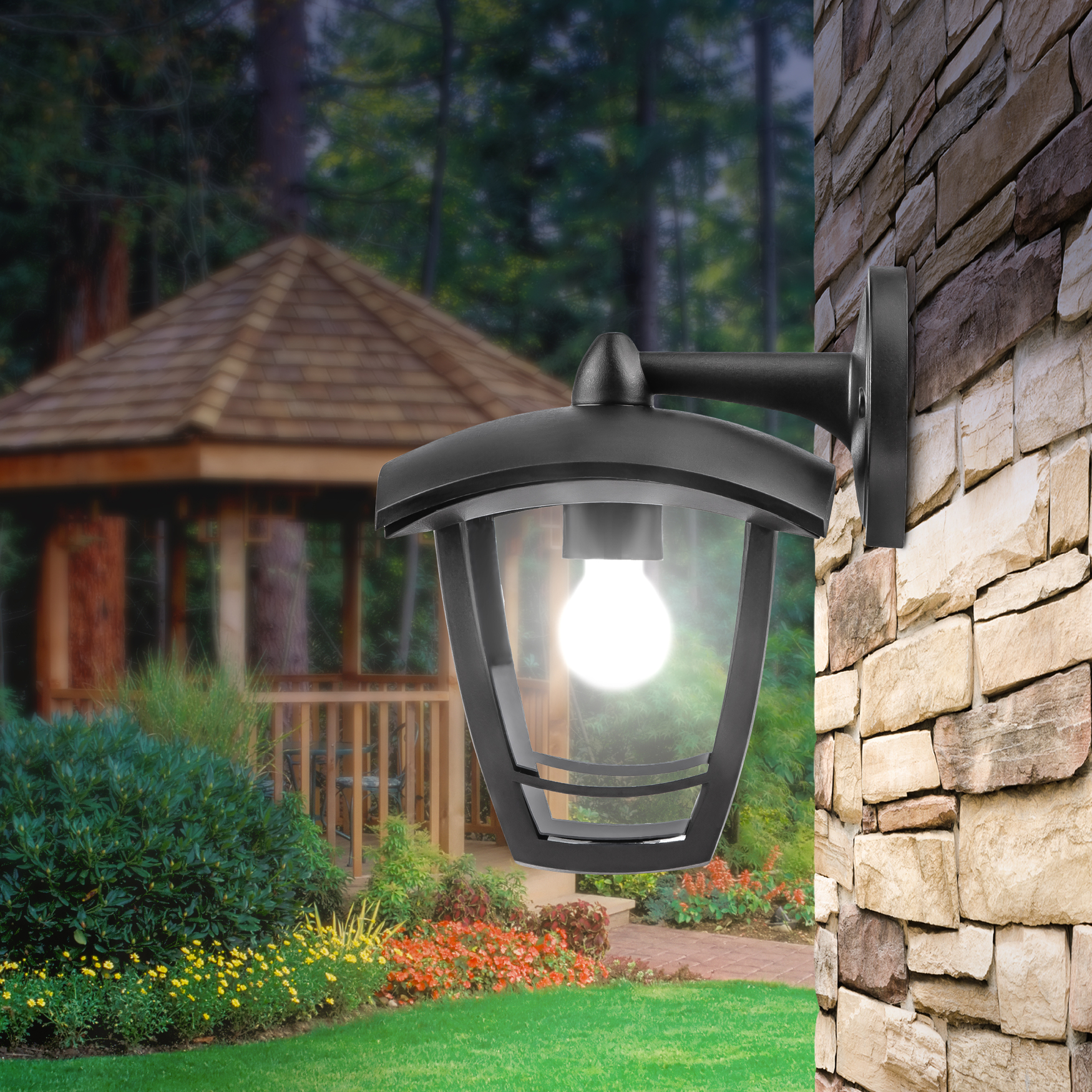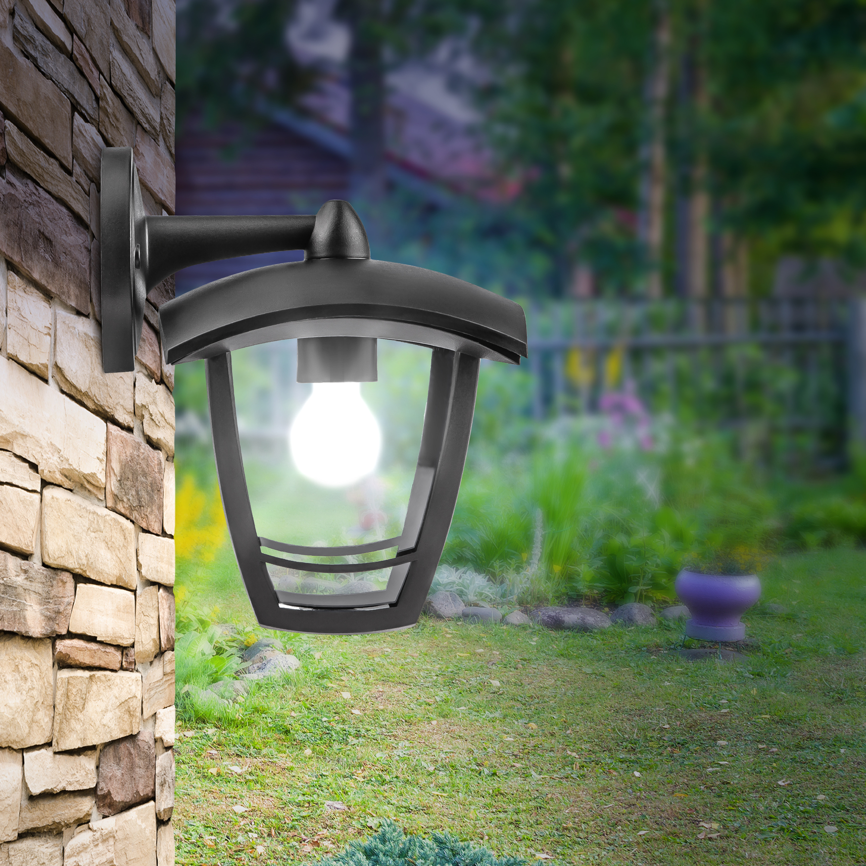 Светильник садово-парковый 4гран черный настенный вниз E27 IP44(У1) НБУ 07-40-002 Дели 2 (8/96) Б0051186 ЭРА