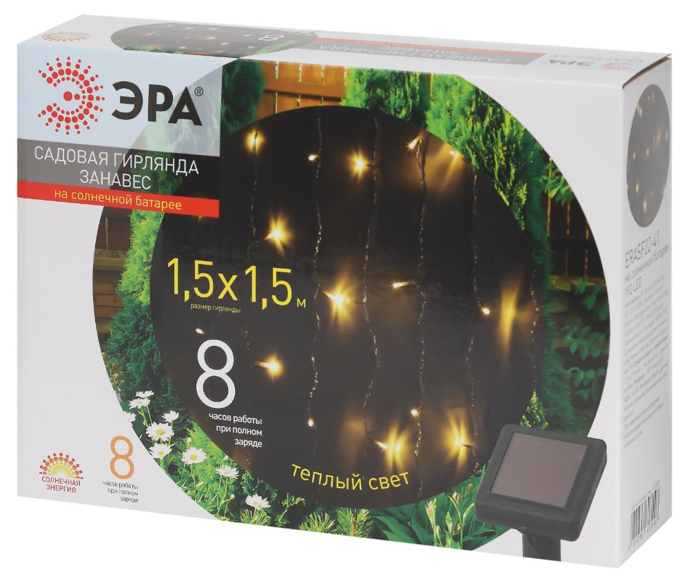 Садовая гирлянда на солнечной батарее Занавес 1,5*1,5 метра, 192 LED ERASF22-41, код Б0053372, производитель ЭРА