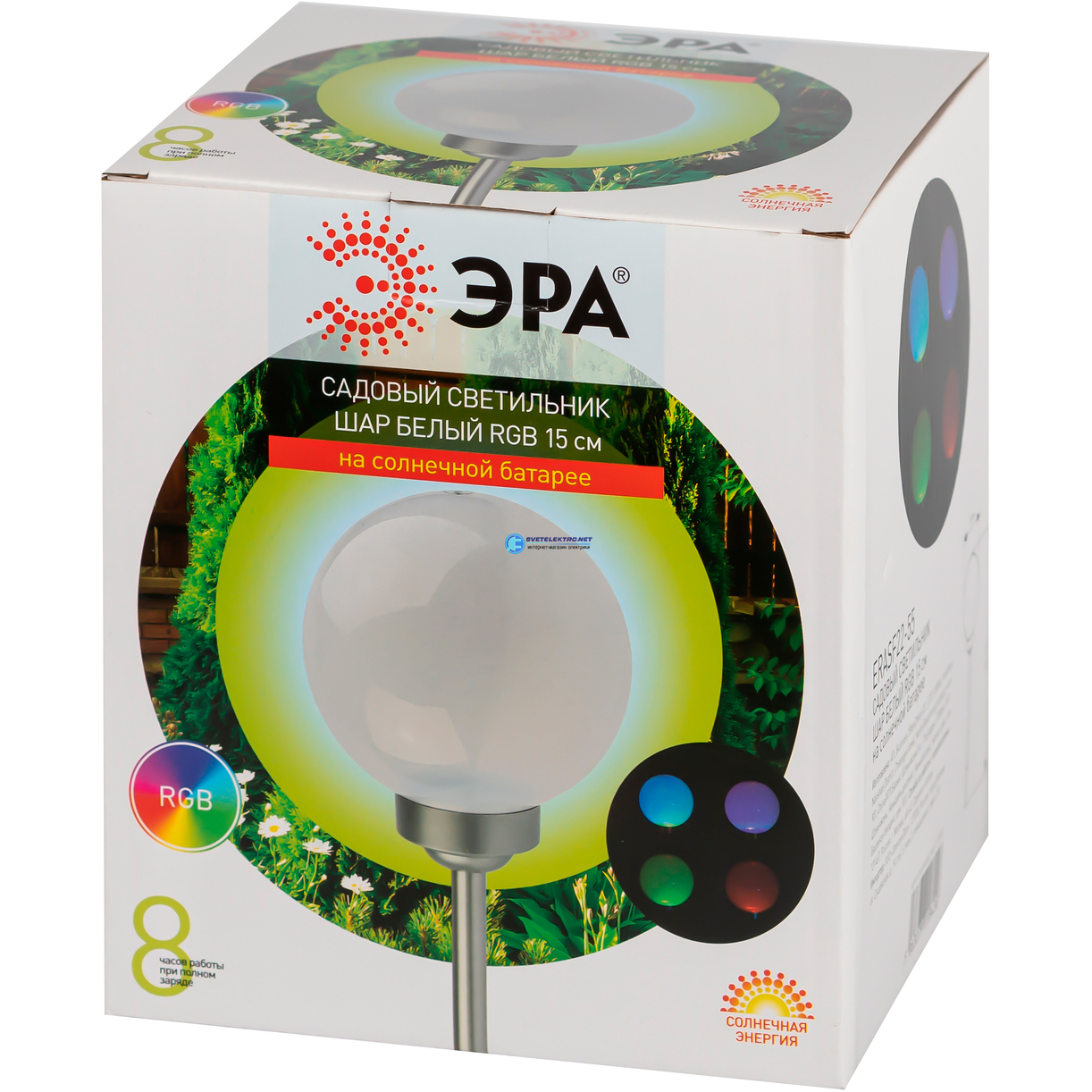 Светильник уличный ERASF22-55 Шар на солненечной батарее садовый RGB d 20 см, код Б0057656, производитель ЭРА