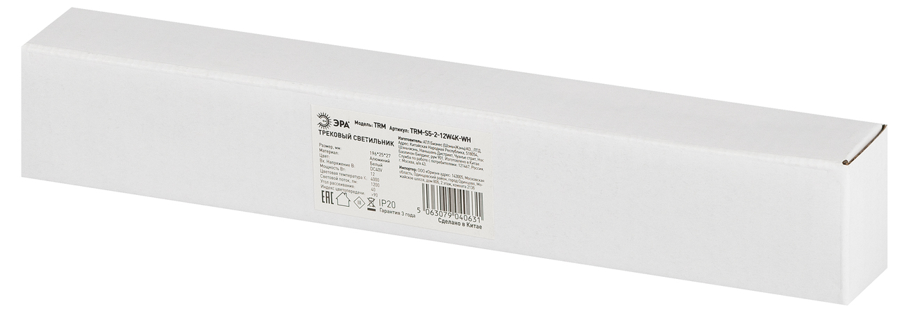 Светильник светодиодный трековый с направленным светом для тонкой магнитной системы 12Вт 4000К белый TRM-S5-2-12W4K WH, код Б0059044, производитель ЭРА