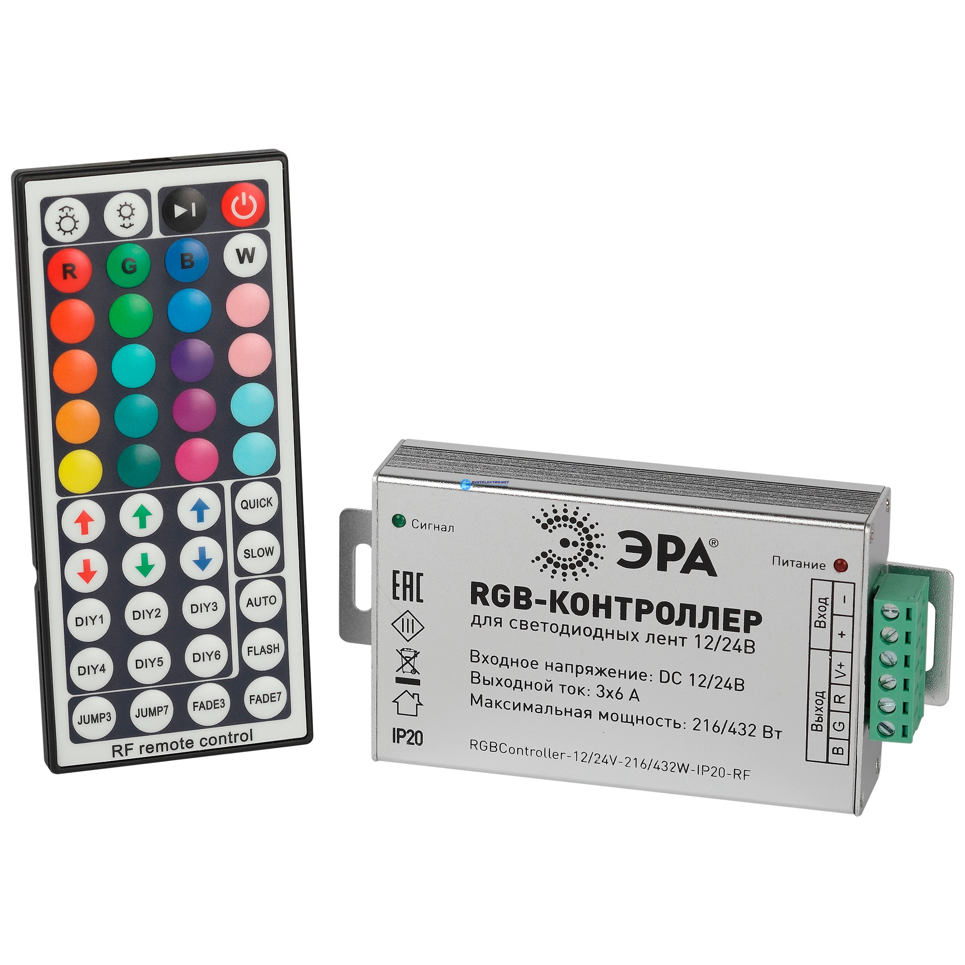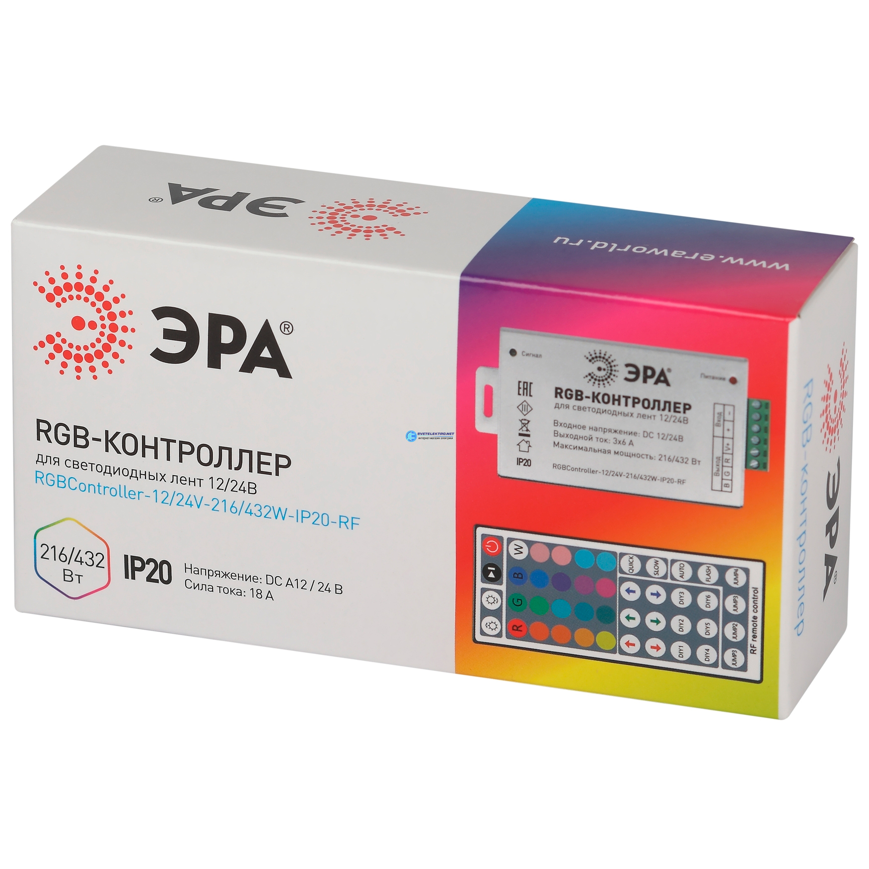 Контроллер для светодиодной ленты с радио пультом RGBController-12/24V-216/432W-IP20-RF, код Б0061112, производитель ЭРА