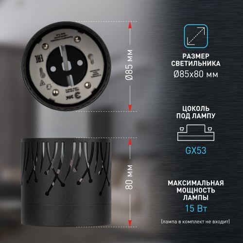 Светильник спот OL54 BK под лампу GX53 черный IP20, код Б0061192, производитель ЭРА