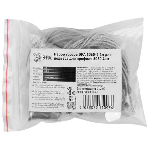 Набор тросов длиной м с крепежами для подвеса (к профилю для светодиодной ленты 6060) 4 шт. 6060-5, код Б0062791, производитель ЭРА