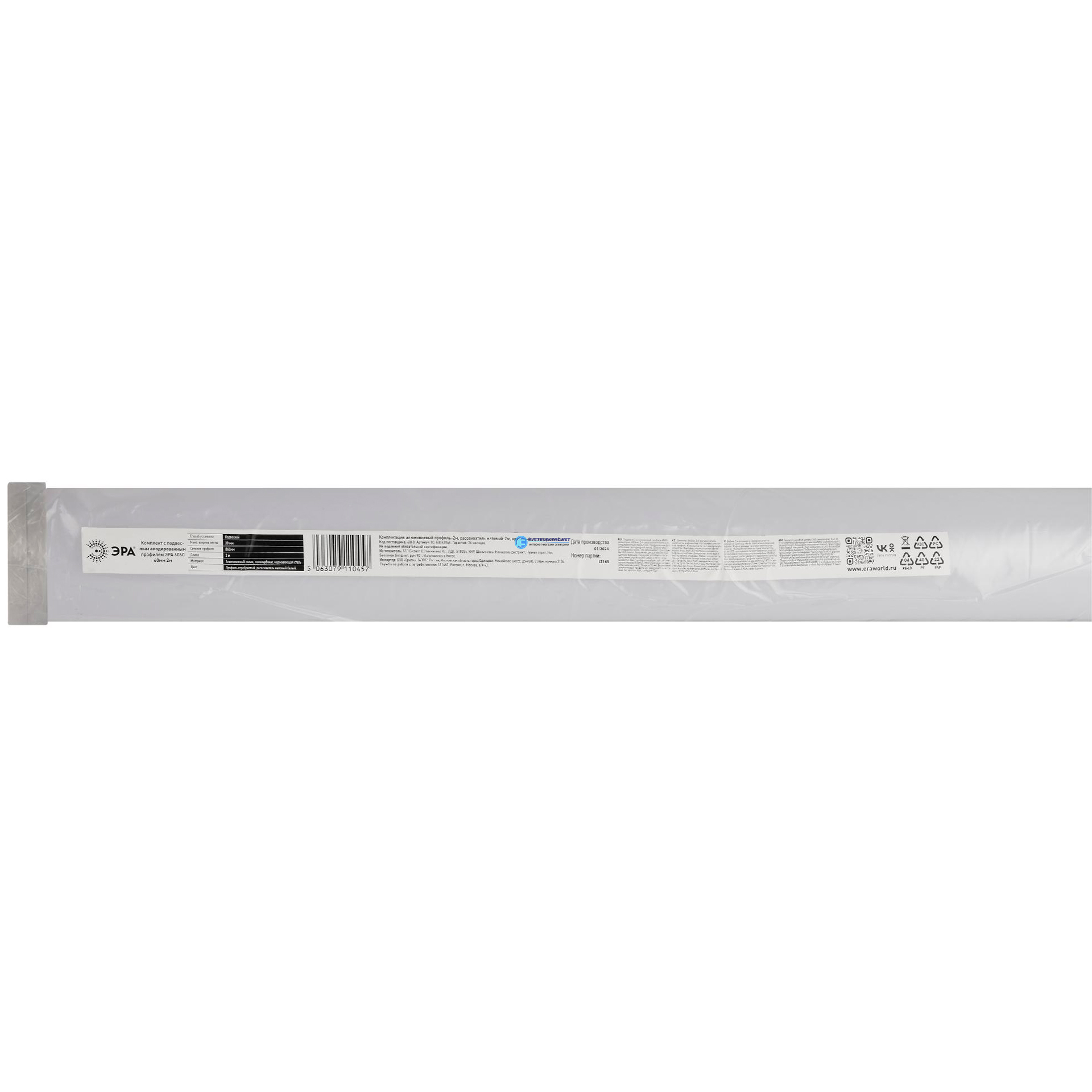 Комплект с подвесным анодированным профилем 6060 60мм 2м, код Б0062846, производитель ЭРА