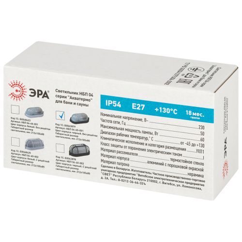 Светильник НБП 04-60-001 Акватермо алюминий/стекло IP54 E27 max 60Вт 212х105 овал черный, код Б0063879, производитель ЭРА