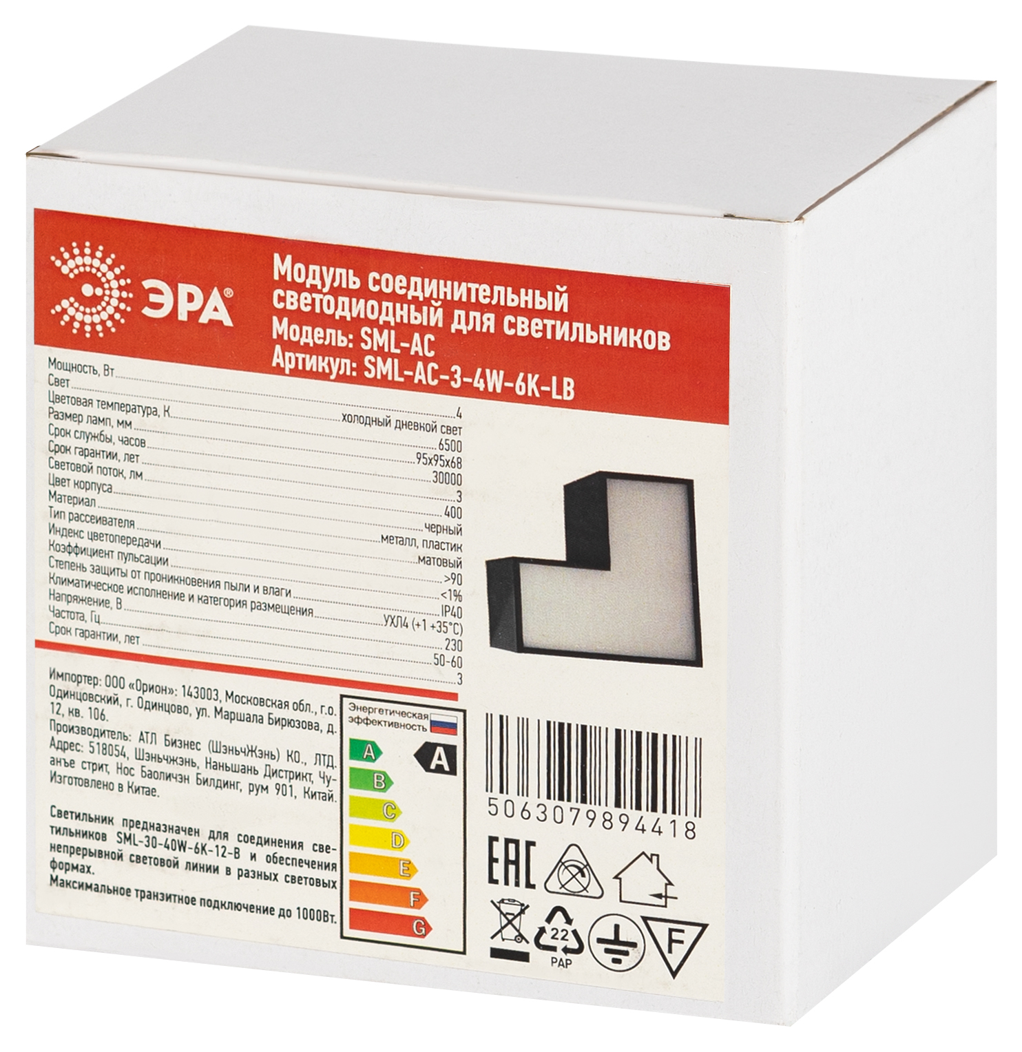 Модуль соединительный светодиодный SML-AC-3-4W-6K-LB для светильников SML-30 4Вт 6500K 400Лм, код Б0069434, производитель ЭРА