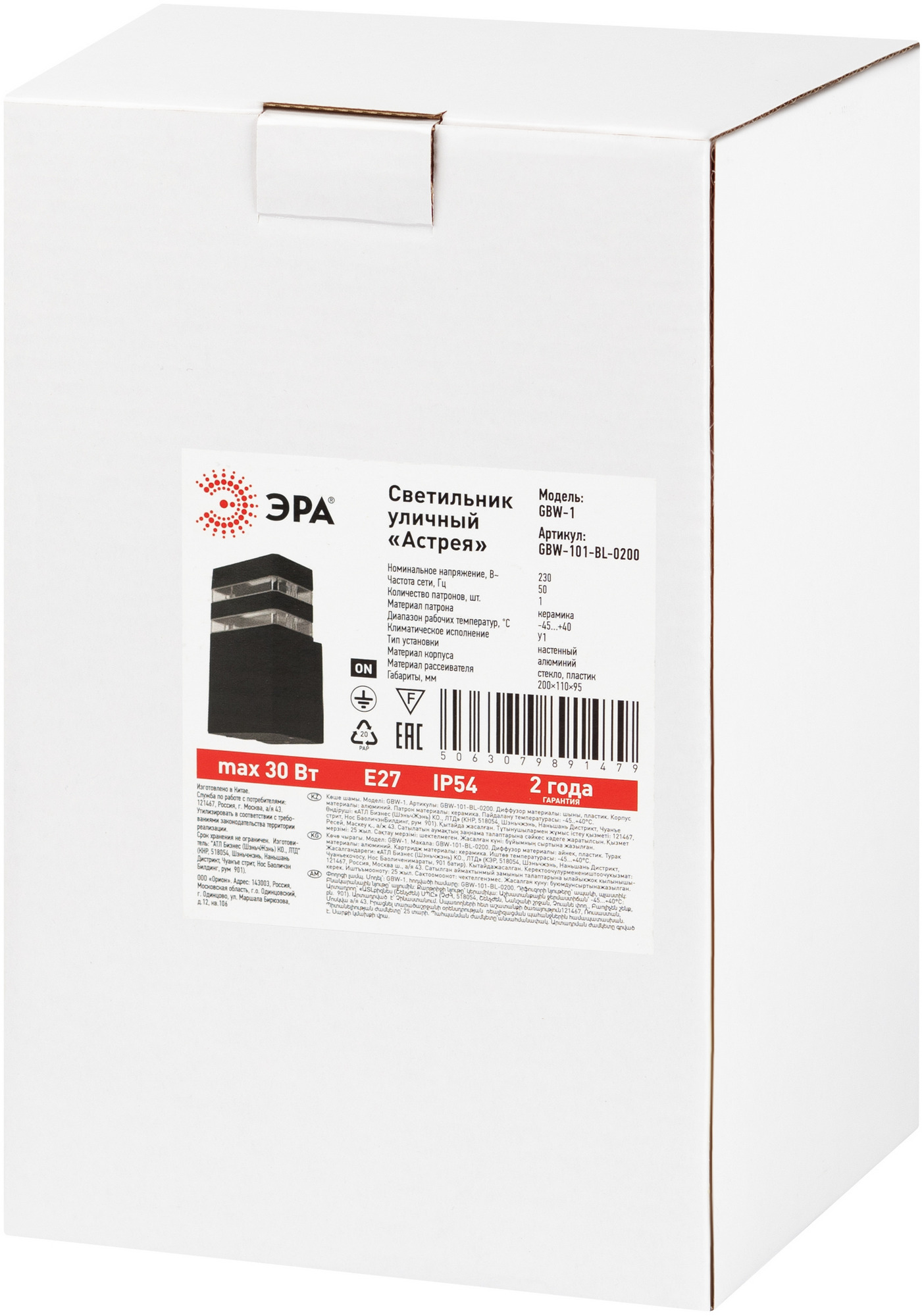 Светильник уличный настенный Астрея GBW-101-BL-0200 230В 1хЕ27 max 30Вт IP54 200х110x95 вверх, код Б0069590, производитель ЭРА