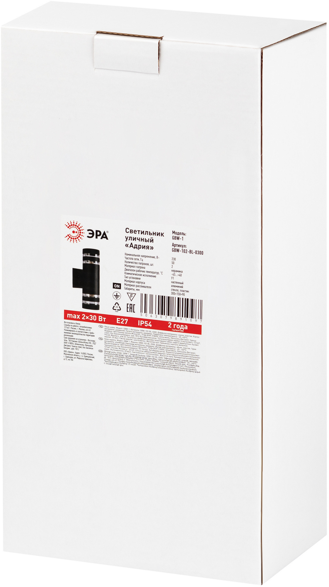 Светильник уличный настенный Адрия GBW-102-BL-0300 230В 2хЕ27 max 30Вт IP54 300х150x90 вверх/вниз, код Б0069596, производитель ЭРА