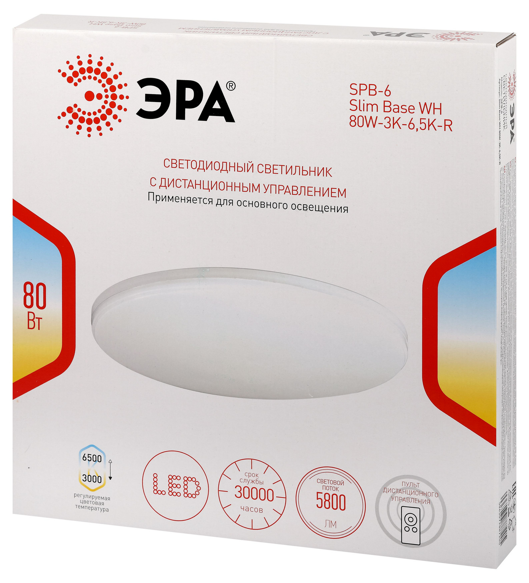 Светильник светодиодный потолочный ДПБ-80Вт 3000К/6500К Классик с ДУ SPB-6 WH 80W R Slim Base, код Б0069764, производитель ЭРА
