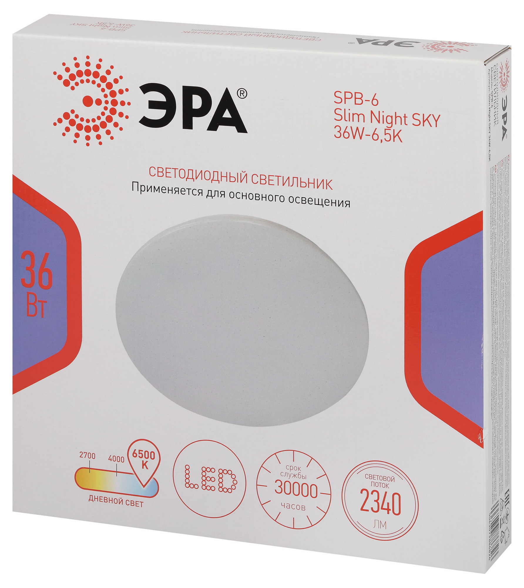 Светильник светодиодный потолочный ДПБ-36Вт 6500К Классик без ДУ SPB-6 WH 36W Slim Night SKY, код Б0069783, производитель ЭРА