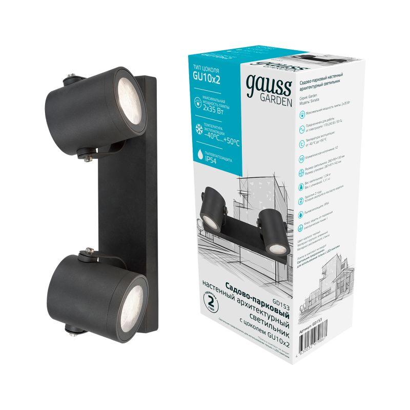 Светильник архитектурный ДБУ под лампу 35 Вт 2хGU10 AC 220В IP54 280х90х130мм Sonata, код GD153, производитель GAUSS