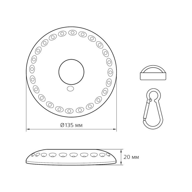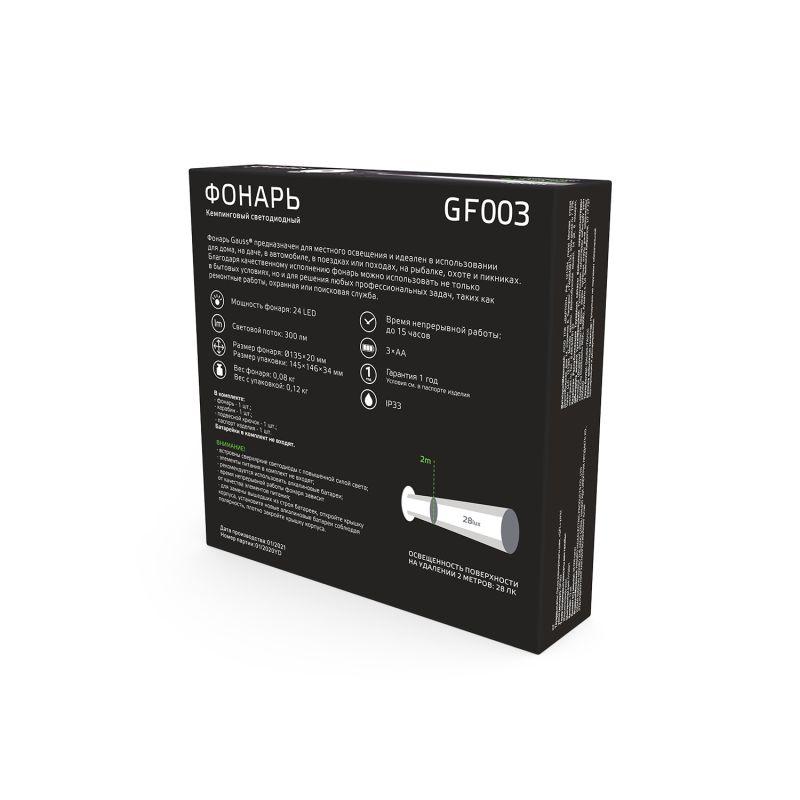 Фонарь кемпинговый туристический светодиодный LED 24LED 300 Лм модель GFL003 белый на батарейках 3xAA с магнитом и карабином, код GF003, производитель GAUSS