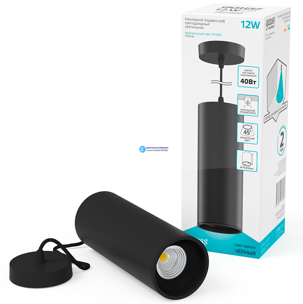 Светильник светодиодный LED ДПО 12вт 920 Лм 4100К IP20 d79х200 мм монт d79 мм Overhead, код HD034, производитель GAUSS