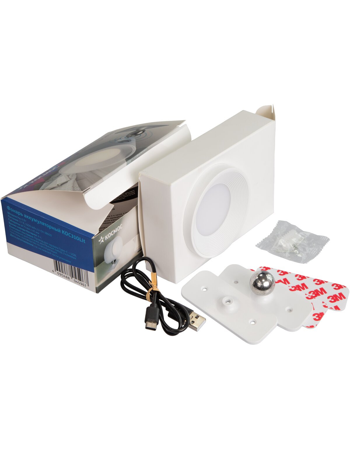 Фонарь-светильник аккумуляторный на магнитном шарнире 6Вт, 3,7В, 1500мАЧ, Li-ion 18650, USB Type-C, белый, код KOC310Lit, производитель Космос
