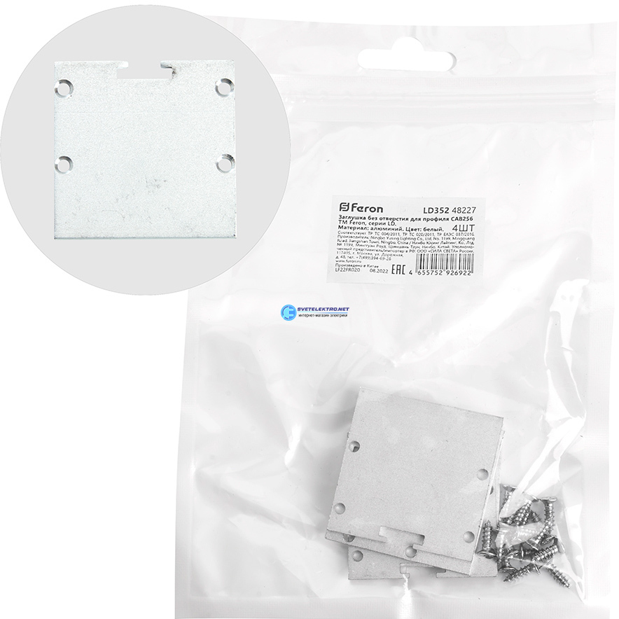 Заглушка для профиля CAB256 без отверстия (4шт) алюминий LD352, код 48227, производитель FERON