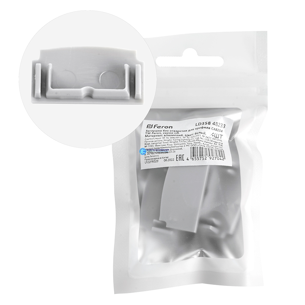 Заглушка для профиля CAB254 без отверстия комплект 4шт LD358, код 48233, производитель FERON