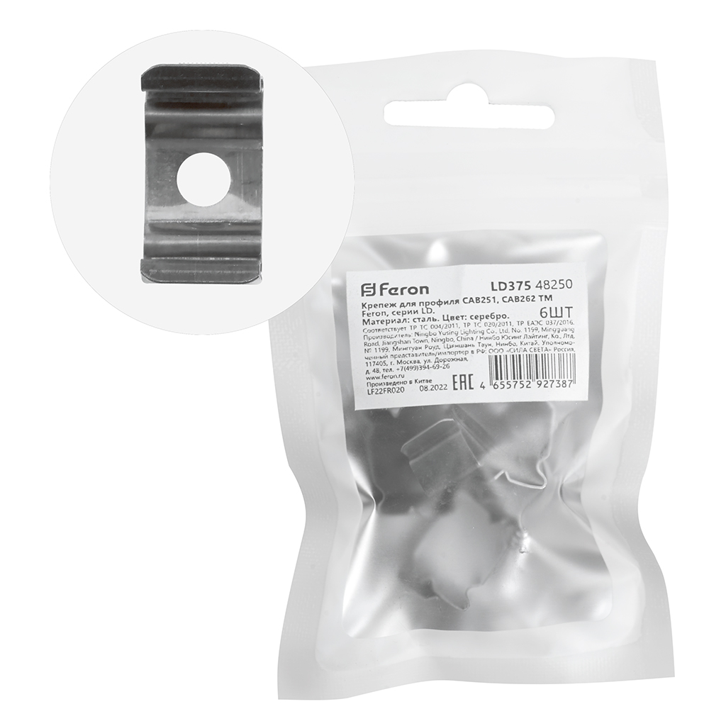 Крепеж для профиля САВ251 и САВ262 сталь (упаковка 6шт) LD375, код 48250, производитель FERON