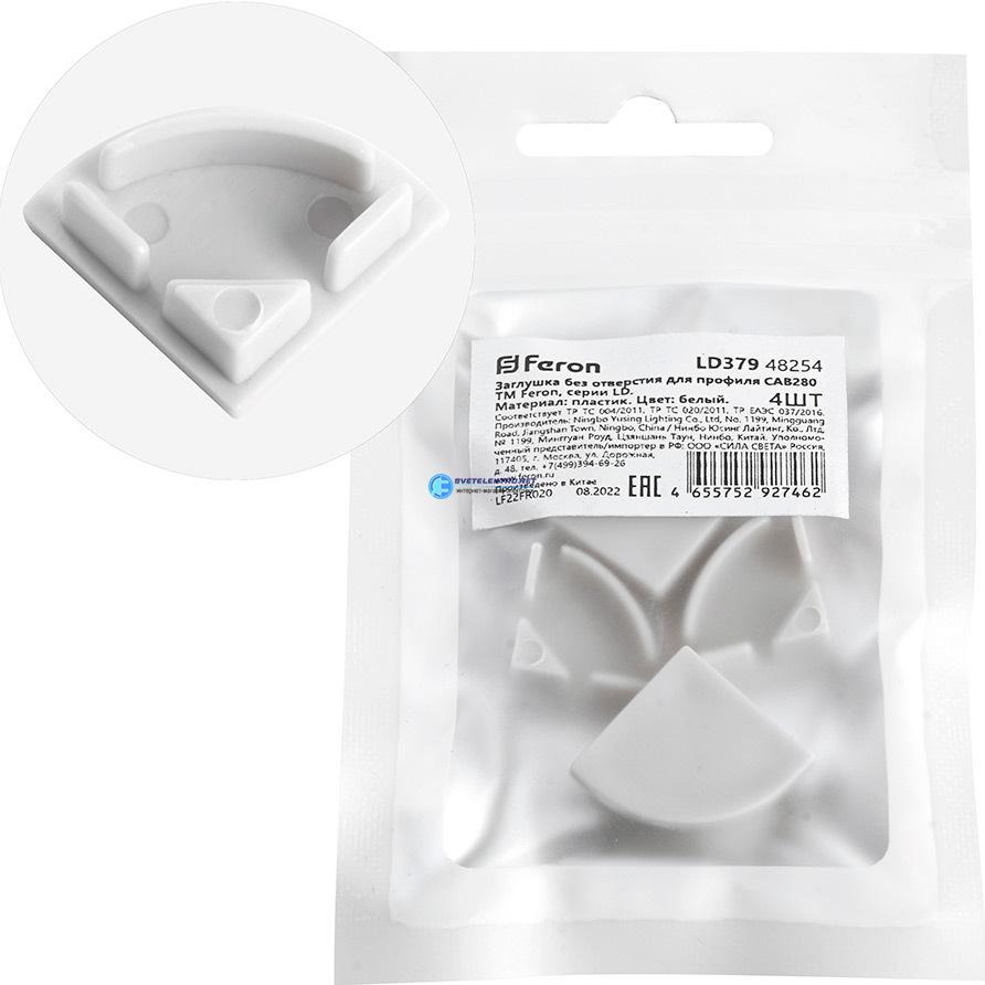Заглушка для профиля CAB280 без отверстия алюминий (4шт) LD379, код 48254, производитель FERON